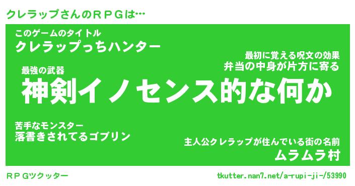 | 男性向けラノベタイトル風あだ名 | 『クレラップの憂鬱』 |