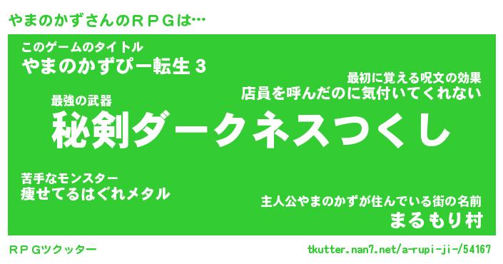 | ファンタジー風あだ名 | 『ヤマフェル』『エターナルヤマノカズー』 |