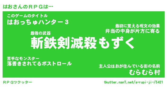 | 伝説のあだ名 | 『伝説のスナイパーはお』 |