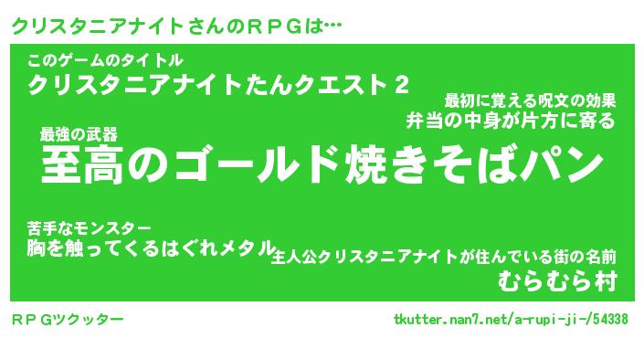 | ヒーロー風カッコイイあだ名 | 『スーパークリスタニアナイト』 |