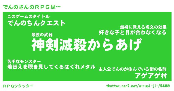 | 男性向けラノベタイトル風あだ名 | 『でんのの憂鬱』 |