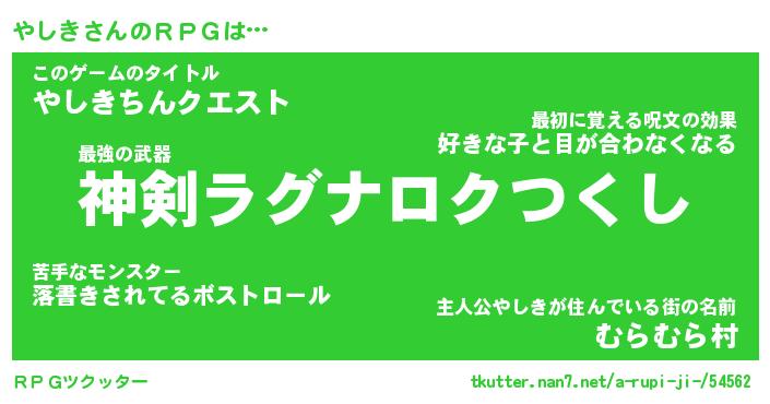 | ファンタジー風あだ名 | 『ヤシフェル』『エターナルヤシキー』 |