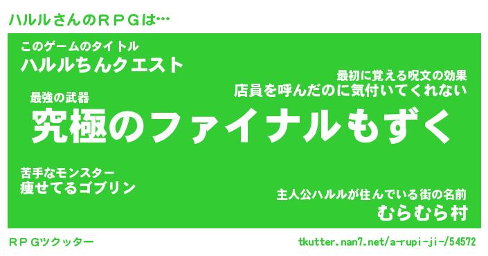 | ファンタジー風あだ名 | 『ハルフェル』『エターナルハルルー』 |