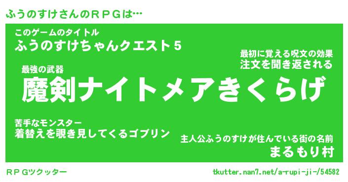 | 伝説のあだ名 | 『伝説のスナイパーふうのすけ』 |