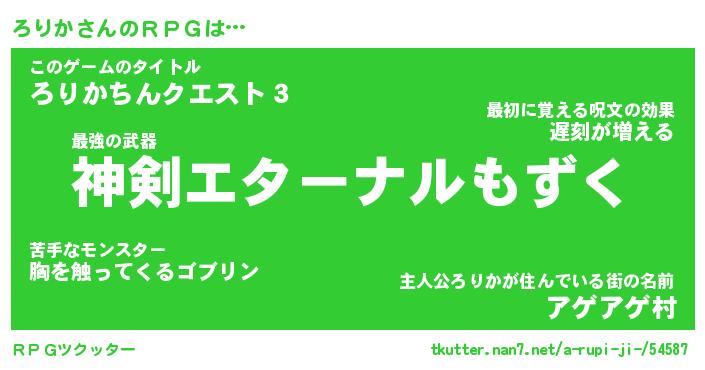 | ファンタジー風あだ名 | 『ロリフェル』『エターナルロリカー』 |
