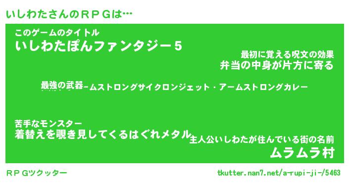 | ファンタジー風あだ名 | 『イシフェル』『エターナルイシワター』 |