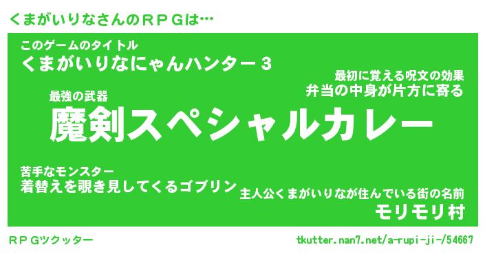 | ヒーロー風カッコイイあだ名 | 『スーパークマガイリナ』『魔戒騎士クマ』 |