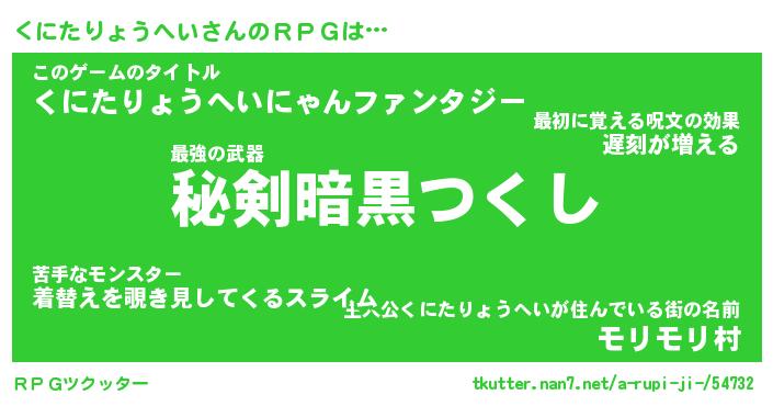 | 男性向けラノベタイトル風あだ名 | 『くにたりょうへいの憂鬱』 |