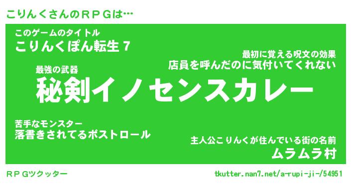 | 男性向けラノベタイトル風あだ名 | 『こりんくの憂鬱』 |