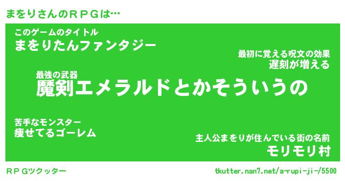 | ファンタジー風あだ名 | 『マヲフェル』『エターナルマヲリー』 |