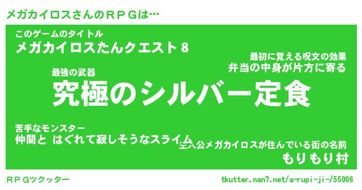 | 料理風あだ名 | 『節約★メガカイロスと油揚げの玉子丼』 |