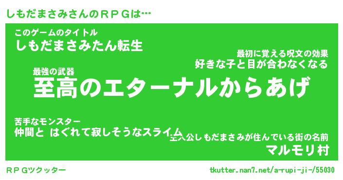 | 胡散臭い通販商品みたいなあだ名 | 『モテモテ間違いなし水晶球…その名も「しもだまさみ」』 |