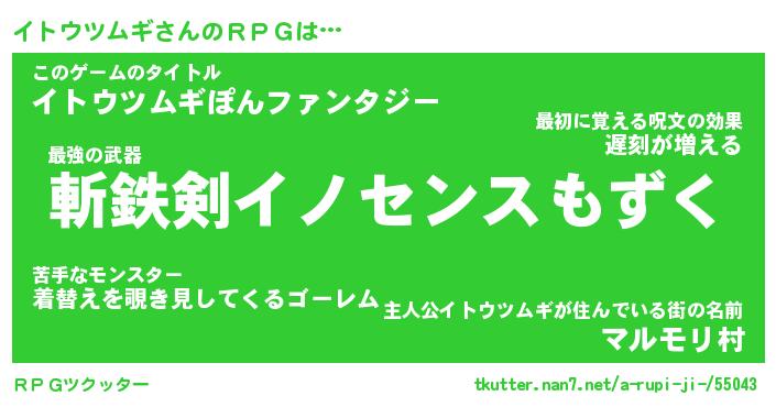 | 伝説のあだ名 | 『伝説のスナイパーイトウツムギ』 |