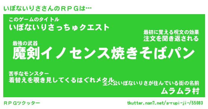 | 伝説のあだ名 | 『伝説のスナイパーいぼないりさ』 |