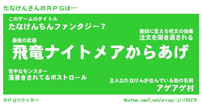 | ファンタジー風あだ名 | 『タナフェル』『エターナルタナケンー』 |