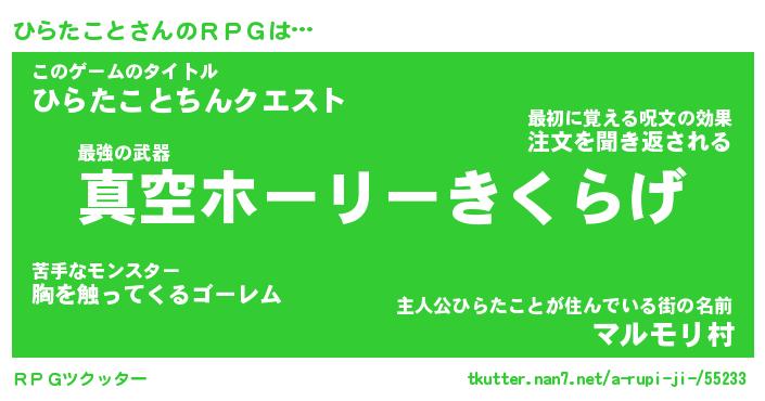 | ヒーロー風カッコイイあだ名 | 『スーパーヒラタコト』『幻影騎士ヒラ』 |
