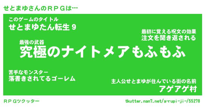 | 胡散臭い通販商品みたいなあだ名 | 『モテモテ間違いなし霊験あらたかなお札…その名も「せとまゆ」』 |