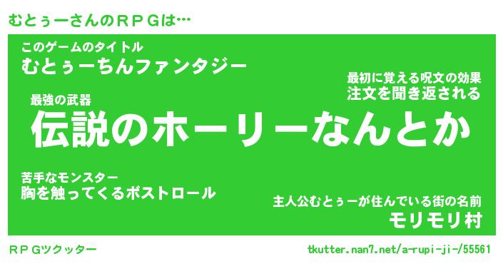 | 男性向けラノベタイトル風あだ名 | 『むとぅーの憂鬱』 |