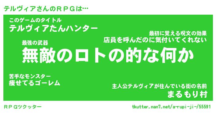 | 男性向けラノベタイトル風あだ名 | 『テルヴィアアートオンライン』 |