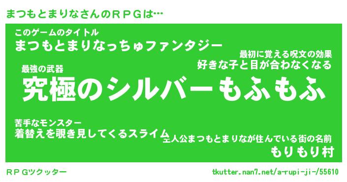 | 2回繰り返すあだ名 | 『まつまつ』『ままつつ』『ぬめぬめ』 |