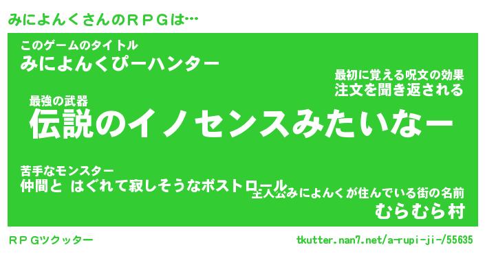 | 男性向けラノベタイトル風あだ名 | 『みによんくの憂鬱』 |
