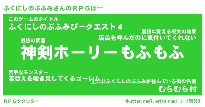 | 男性向けラノベタイトル風あだ名 | 『ふくにしのぶふみの憂鬱』 |