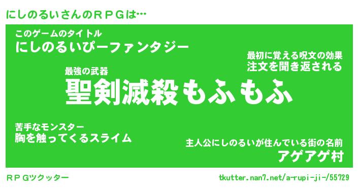 | ファンタジー風あだ名 | 『ニシフェル』『エターナルニシノルイー』 |