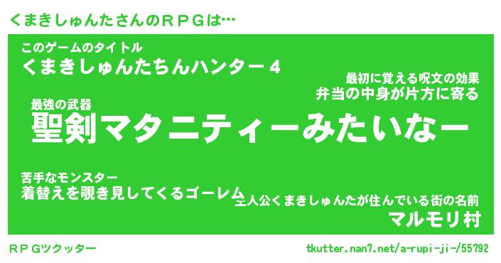 | 男性向けラノベタイトル風あだ名 | 『くまきしゅんたの憂鬱』 |