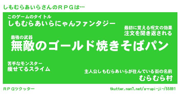 | ヒーロー風カッコイイあだ名 | 『スーパーシモムラアイラ』 |