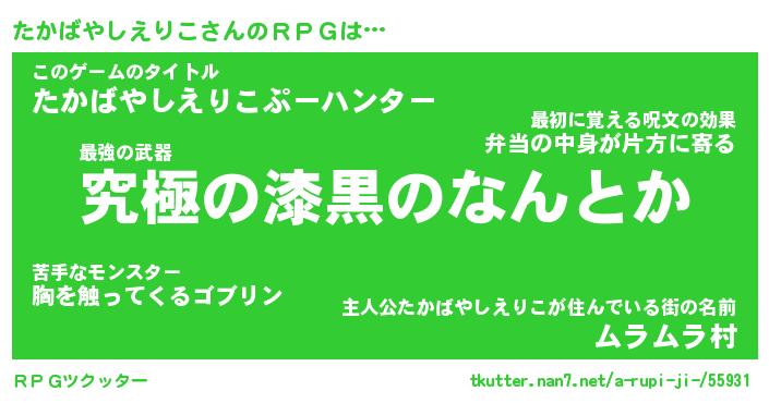| 男性向けラノベタイトル風あだ名 | 『タカバヤシエリコアートオンライン』 |