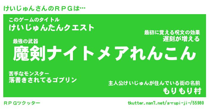 | 男性向けラノベタイトル風あだ名 | 『けいじゅんの憂鬱』 |