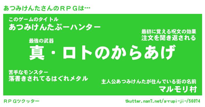 | 男性向けラノベタイトル風あだ名 | 『アツミケンタアートオンライン』 |