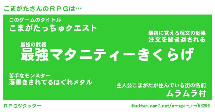 | ファンタジー風あだ名 | 『コマフェル』『エターナルコマガター』 |