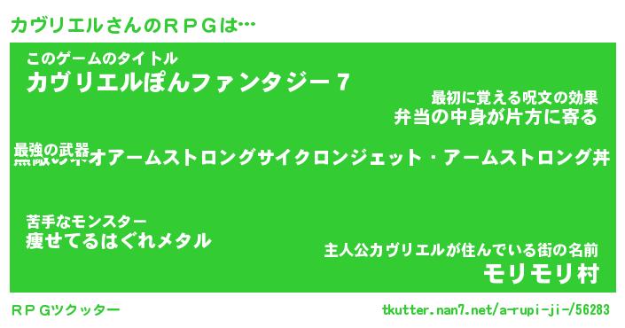 | ファンタジー風あだ名 | 『カヴフェル』『エターナルカヴリエルー』 |