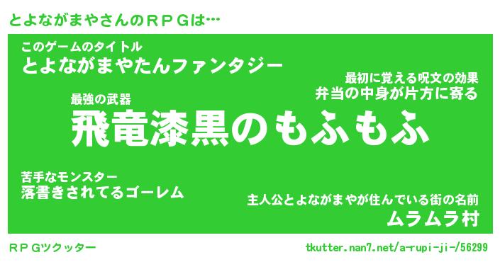 | 男性向けラノベタイトル風あだ名 | 『トヨナガマヤアートオンライン』 |