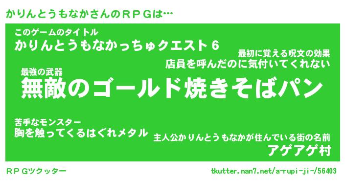 | 男性向けラノベタイトル風あだ名 | 『カリントウモナカアートオンライン』 |