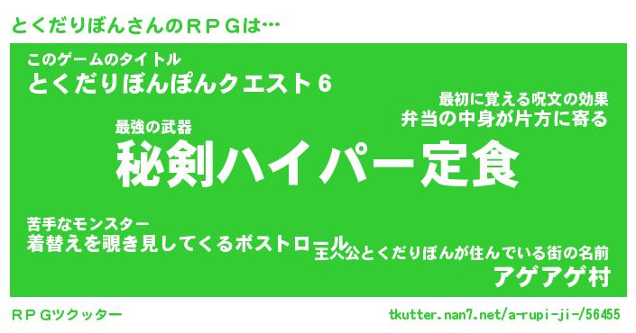 | 男性向けラノベタイトル風あだ名 | 『とくだりぼんの憂鬱』 |