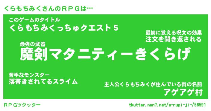 | 伝説のあだ名 | 『伝説のスナイパーくらもちみく』 |
