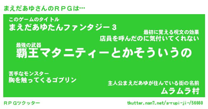 | ファンタジー風あだ名 | 『マエフェル』『エターナルマエダアユー』 |