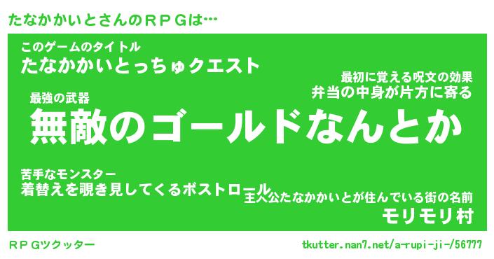 | 男性向けラノベタイトル風あだ名 | 『タナカカイトアートオンライン』 |
