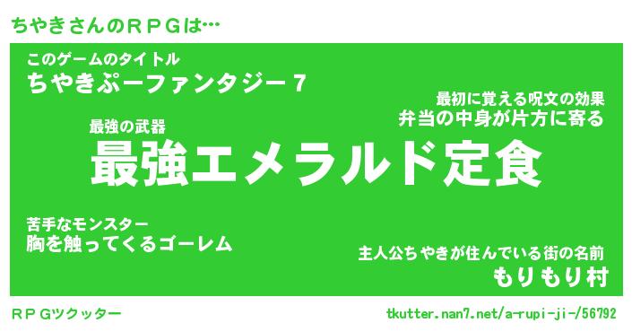 | ファンタジー風あだ名 | 『チヤフェル』『エターナルチヤキー』 |