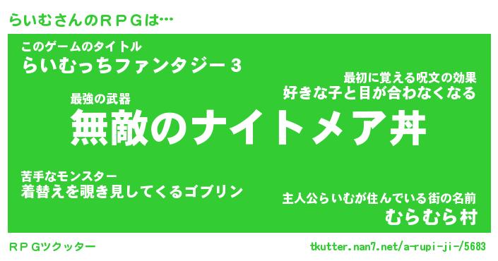 | 意味不明あだ名 | 『ペロリンらいむ』『らいむフォーエバー』 |