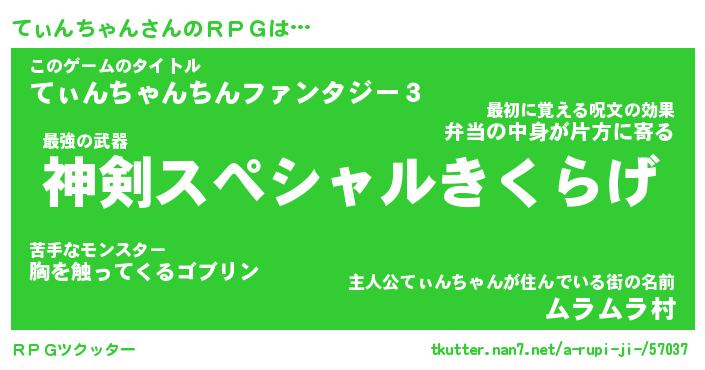 | 男性向けラノベタイトル風あだ名 | 『てぃんちゃんの憂鬱』 |