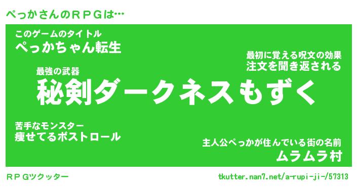| 男性向けラノベタイトル風あだ名 | 『ぺっかの憂鬱』 |