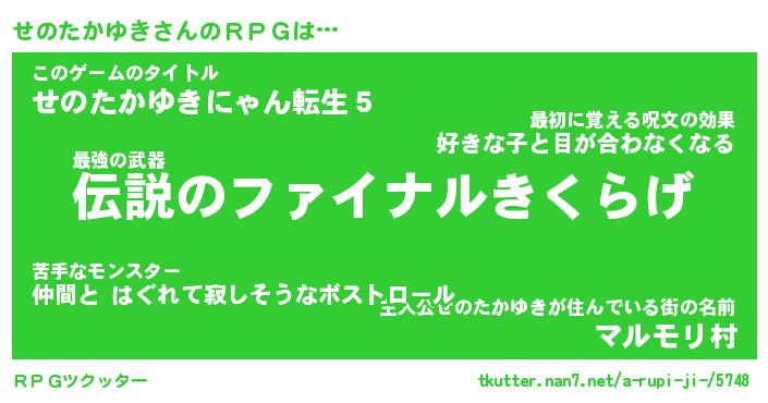 | 男性向けラノベタイトル風あだ名 | 『せのたかゆきの憂鬱』 |
