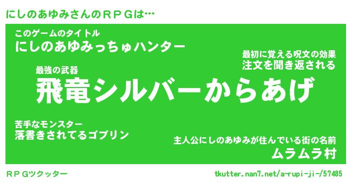 | 男性向けラノベタイトル風あだ名 | 『ニシノアユミアートオンライン』 |
