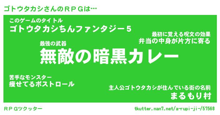| 男性向けラノベタイトル風あだ名 | 『ゴトウタカシアートオンライン』 |