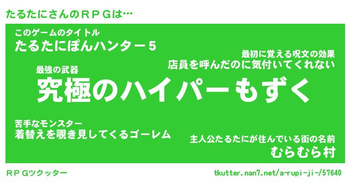 | 男性向けラノベタイトル風あだ名 | 『たるたにの憂鬱』 |