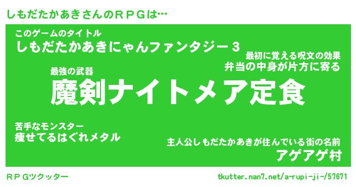 | 胡散臭い通販商品みたいなあだ名 | 『必ず成功する霊験あらたかなお札…その名も「しもだたかあき」』 |