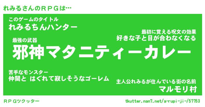 | ヒーロー風カッコイイあだ名 | 『スーパーレミル』『ウルトラれみるマン』 |